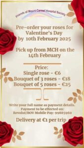 Find out more »Friends of Mount Carmel Hospital are taking orders for Bouquet of roses for Valentine's day details in the poster