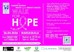 Europa Donna are organising a walk for hope Details: Date: 26th April 2026 Time: 9.30am Place: Zonqor Point Marsascala