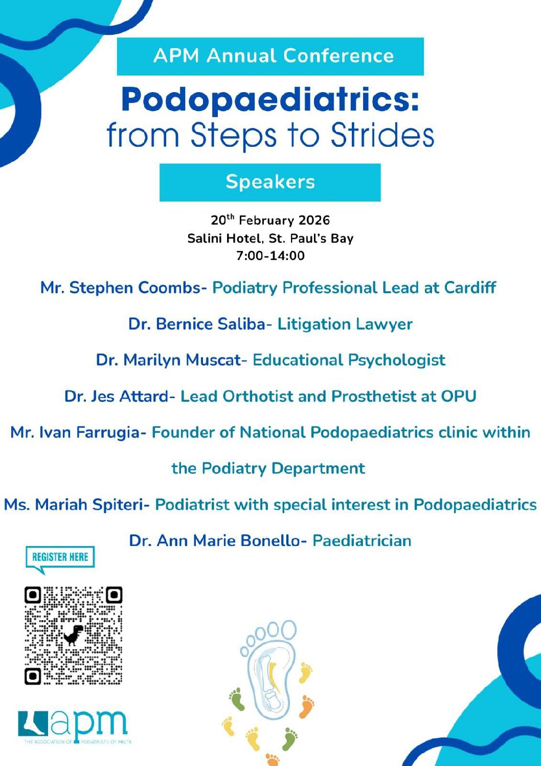 The Association of Podologists Malta will be organising their annual conference. The event is scheduled to take place on the 20th February 2026. Please note that spaces are limited and allocated on a first-come, first-served basis. The registration deadline is 11th February 2026.