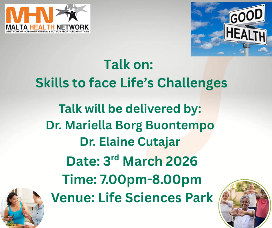 Malta Health Network are proud to announce a talk on Skills to face life Challenges.